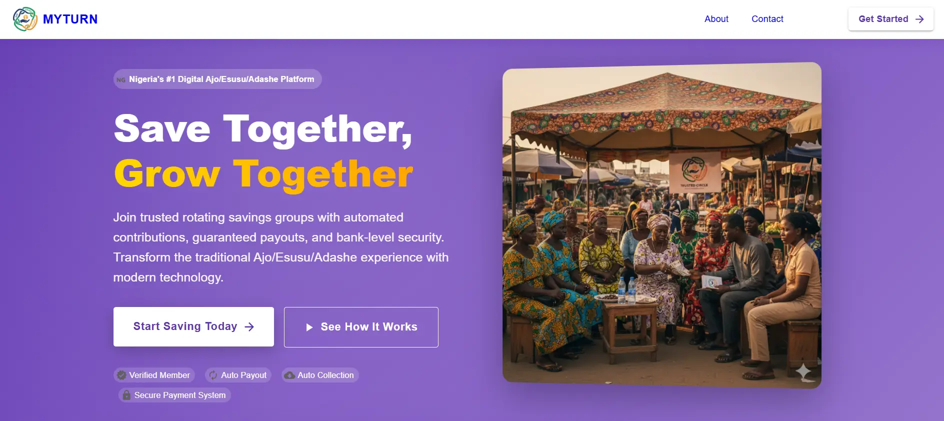 Digital Ajo/Esusu/Adashe platform with automated collections, secure payouts, and Monnify-backed payment processing.